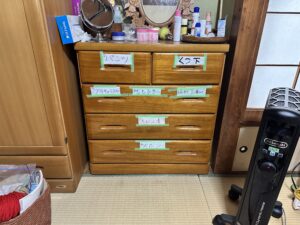 ほら、あこちゃんが認知症のばあちゃんが分かりやすいようにタンスに書いてくれてるし。