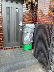 生協さんの配達ボックスが山積みされとりますがな!
