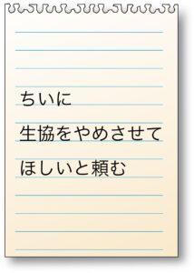 本人もようやく「これではいけない」と悟ったようで、次女である私に生協を辞める手続きをして欲しいと頼んできました。
